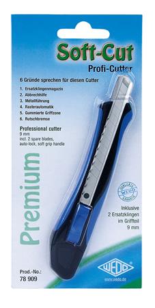 Univerzális kés, 9 mm, WEDO "Soft-cut", kék/fekete