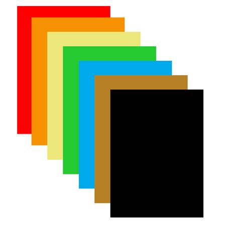 színösszeállítás: 15-15 ív vörös, narancssárga, sárga, limezöld, vízkék, világos barna, 10 ív fekete