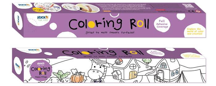 Színező tekercs, öntapadó, 31x355 cm, STICK N, vidám falu