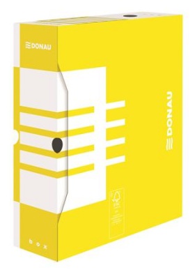 KezdőlapIrodaszerekIratrendezés, archiválásArchiválókArchiválódoboz, A4, 100 mm, karton, DONAU, citromsárga