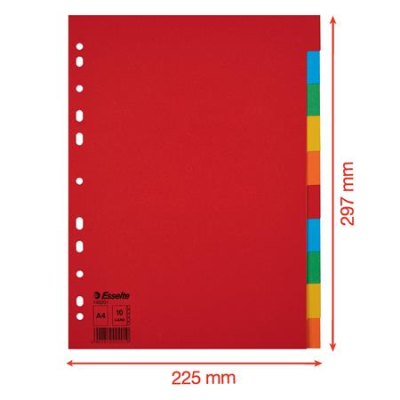 Regiszter, karton, A4, 10 részes, ESSELTE "Economy", színes