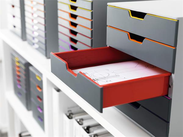 KezdőlapIrodaszerekIratrendezés, archiválásFiókos és polcos tárolórendszerekIrattároló, műanyag, 5 fiókos, DURABLE "VARICOLOR® 5", szürke
