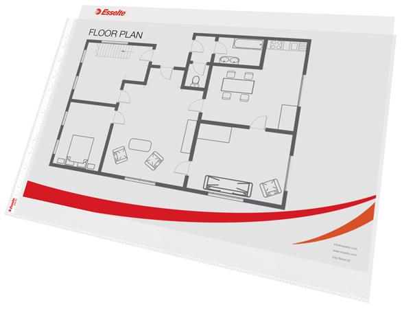 Matt, átlátszó felületű lefűzhető tasakok, amelyek ideálisak nagyobb formátumú rajzok, tervek, poszterek tárolására.