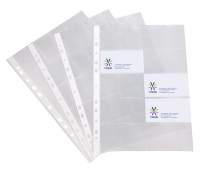 Névjegytartó genotherm, lefűzhető, A4, 100 mikron, víztiszta, 20 férőhelyes, VIQUEL