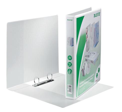 Gyűrűs könyv, panorámás, 2 gyűrű, D alakú, 44 mm, A4 Maxi, PP, LEITZ, fehér