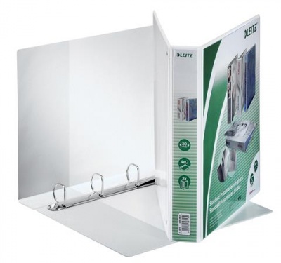 Gyűrűs könyv, panorámás, 4 gyűrű, D alakú, 51 mm, A4 Maxi, PP, LEITZ, fehér