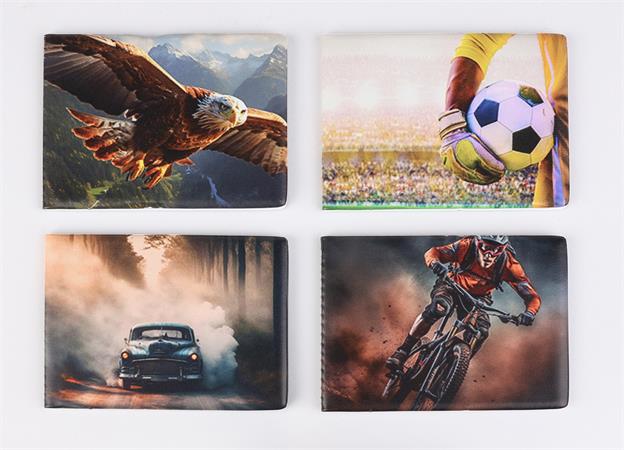Diák- és igazolványtartó, fekvő, 6 betét lappal, mintás PVC, "Többlapos", fiú