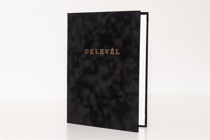 Oklevéltartó, A4, exkluzív, plüss, aranyozva, fekete