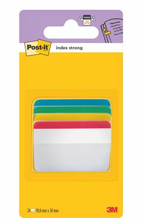 Jelölőcímke, műanyag, megerősített, döntött, 4x6 lap, 50,8x38,1 mm, 3M POSTIT, vegyes színek