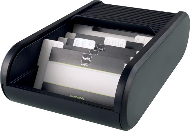 Névjegytartó, 300 db-os, rolós, fekvő, HELIT "Linear", fekete