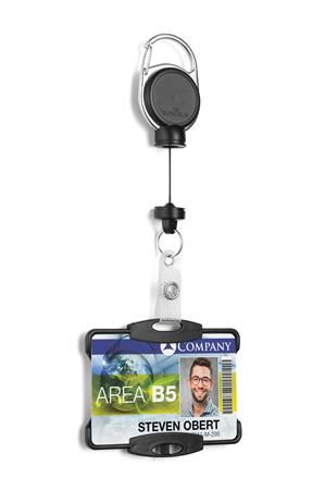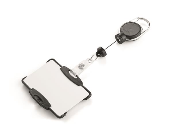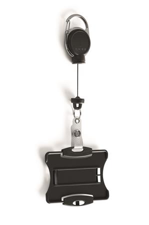 Azonosítókártya-tartó, kihúzható, karabineres, DURABLE "Extra strong", kártyatartóval, fekete