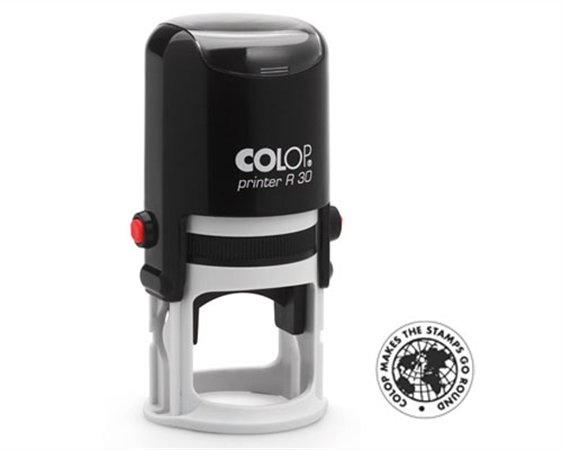 Bélyegző, kör, COLOP " Printer R 30", fekete cserepárnával