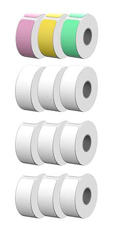 -a csomag tartalma: 12 tekercs címke (1 zöld, 1 sárga, 1 rózsaszín, 9 fehér)
