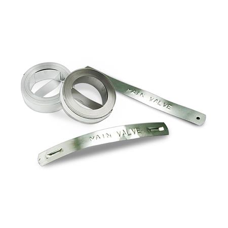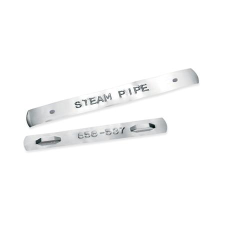 Az rozsdamentes acél címkék ideálisak nagy teherbírású, szélsőséges körülmények közötti címkézéshez. Kitűnően ellenállnak vegyszereknek, mostoha időjárásnak, szélsőséges hőmérsékletnek és dörzsölésnek. Ideális csővezetékek, föld alatti kábelek, motoralkatrészek, építési anyagok és sok minden más jelölésére.