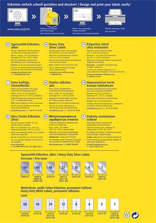-tervezze meg és nyomtassa ki ezüst ipari címkéit gyorsan és egyszerűen - ingyenes szoftverünkért és sablonjainkért látogasson el a www.avery.hu/szoftver weboldalra vagy használja a Microsoft® Office csomagokba beépített sablonjainkat