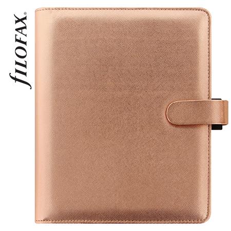Kalendárium, gyűrűs, betétlapokkal, A5 méret, FILOFAX, "Saffiano Metallic", rózsaarany
