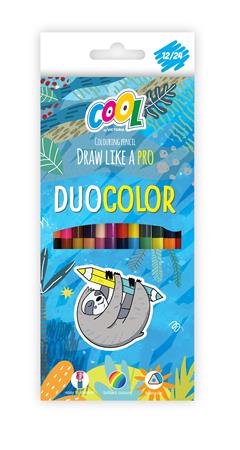 Színes ceruza készlet, háromszögletű, kétvégű, COOL BY VICTORIA "Duocolor", 24 különböző szín