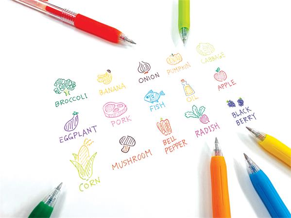 -gumírozott markolat, melynek színe megegyezik a tinta színével