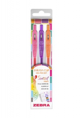 Zseléstoll készlet, 0,25 mm, nyomógombos, ZEBRA "Sarasa Clip Sunset", 3 különböző szín