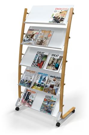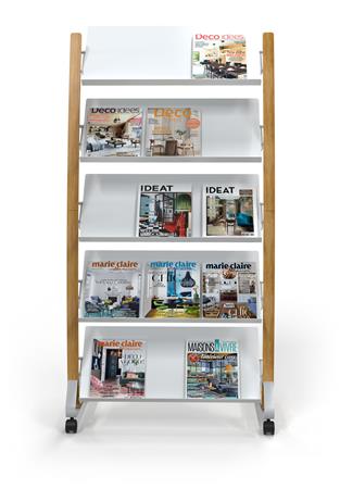 Katalógustartó, mobil, 5x3 rekeszes, ALBA, fa/fehér