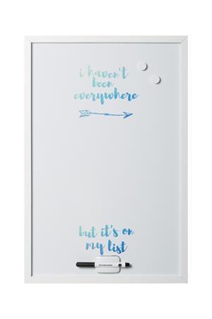 Üzenőtábla, mágneses, 60x40 cm, fehér fa keret, VICTORIA VISUAL, "Travel"