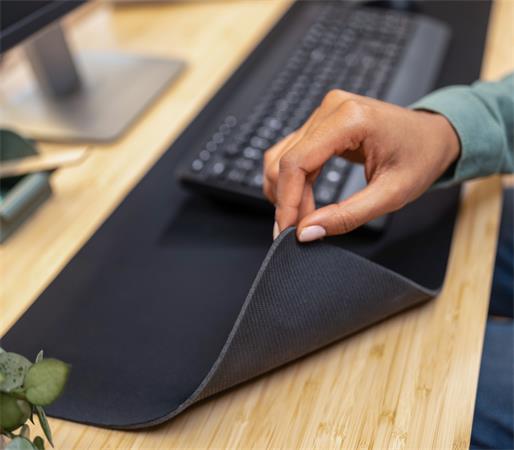 Extra nagy egéralátét optimalizált felületi textúrával és elegendő hellyel az egérnek és a billentyűzetnek egyaránt.