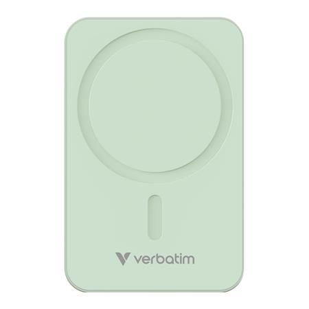 Power bank, mágneses (vezeték nélküli), 20.000mAh, VERBATIM "Charge n Go Essentials", zöld