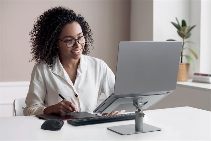 Az univerzális asztali laptopállvánnyal kényelmes megtekintési magasságba állíthatja laptopját, miközben csökkenti az asztali zsúfoltságot.