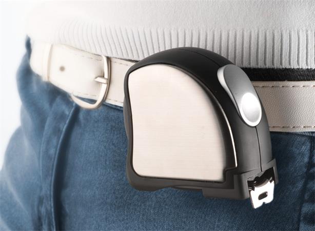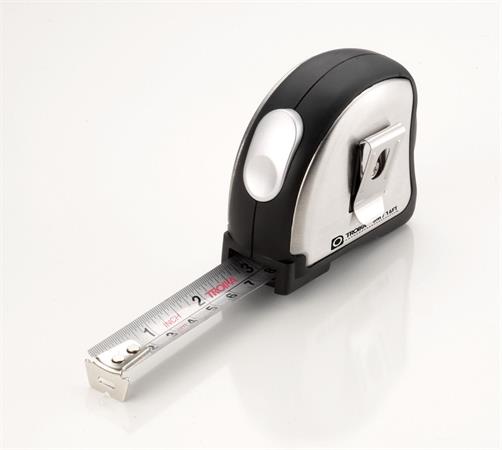 Mérőszalag övcsipesszel és blokkoló gombbal
