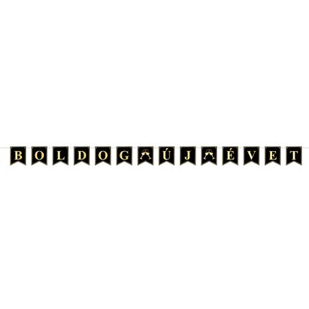 Felirat, 200 cm, "Boldog Új Évet", fekete-arany