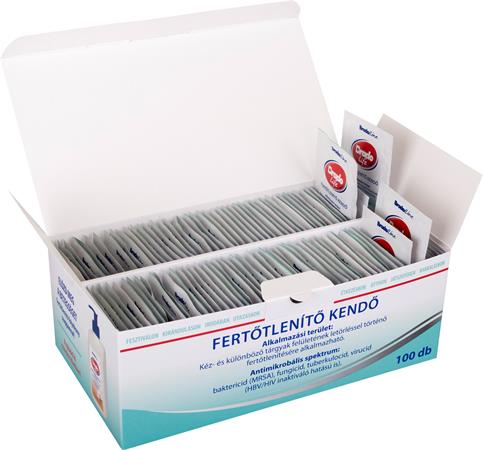 100 db praktikus, egyesével csomagolt útikendő, mely véd a baktériumok és kórokozók ellen. Kéz- és különböző tárgyak felületének letörléssel történő fertőtlenítésére alkalmazható.