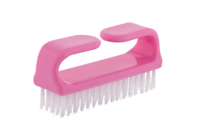 Markolattal ellátott műanyag körömkefe, műanyag szálakkal.