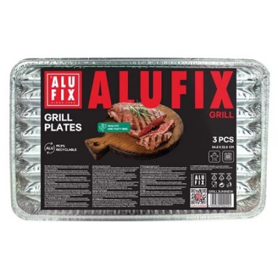 Grilltálca, 34,5x22,5 cm, négyszögletű, 3 db, ALUFIX