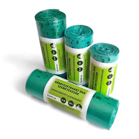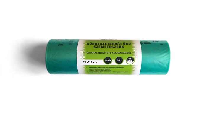 Szemeteszsák, öko, 73x115x1,15 cm, 120 l, 10 db, zöld